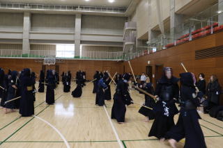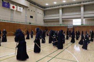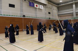 江東区の連盟本部稽古は、準備運動、素振り、打ち込み稽古、回り稽古、地稽古となります。